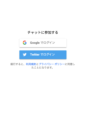 次にニックネーム入力欄に好きな名前を入力し、利用規約に同意して、"参加" をタップしてください。(ニックネームはチャットの発言者名として表示されます。)