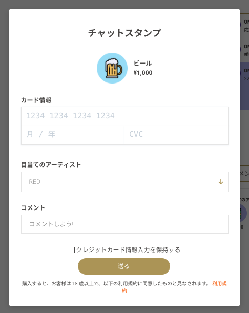送りたい出演者を選択して、カード情報とメッセージを入力してください。送るボタンをタップします。